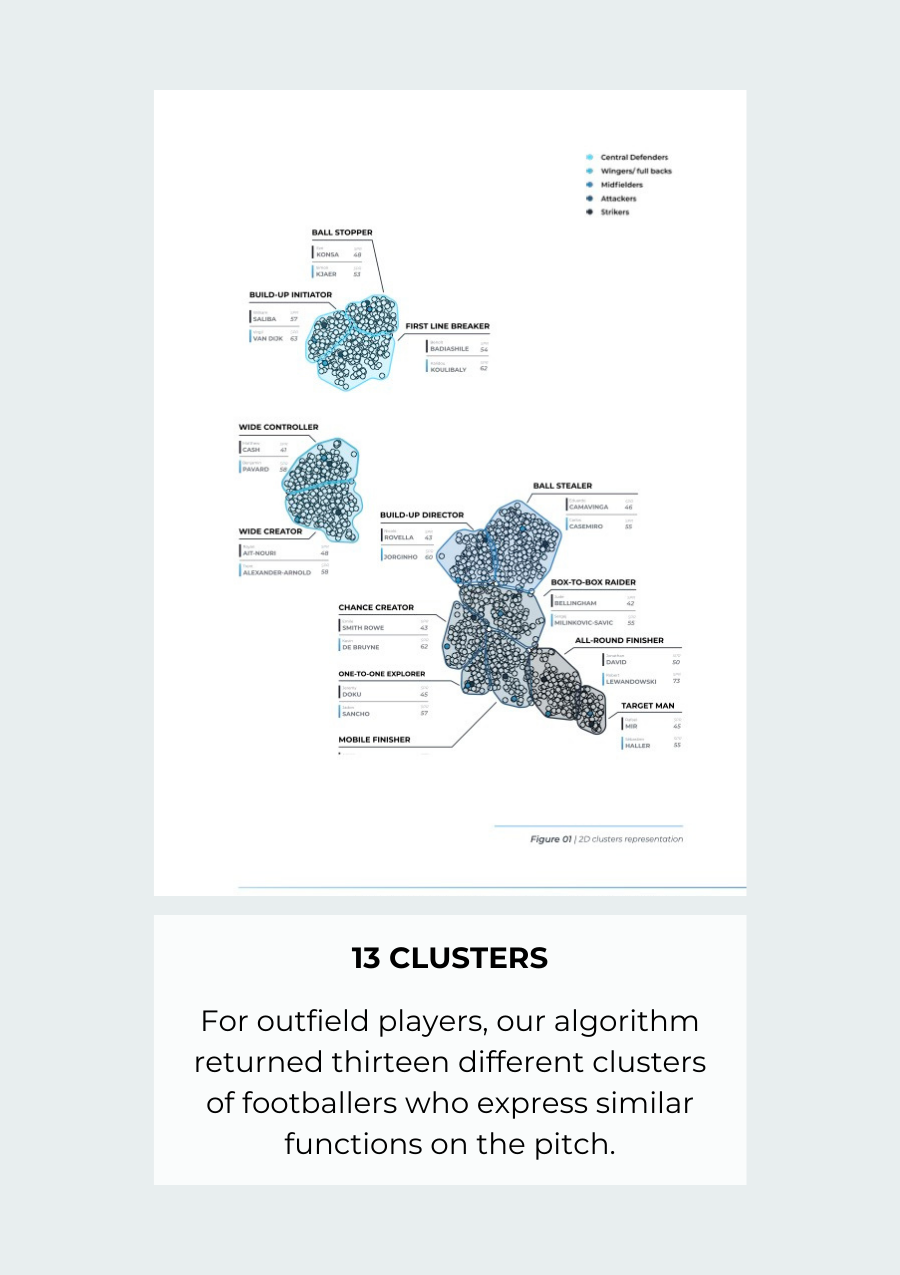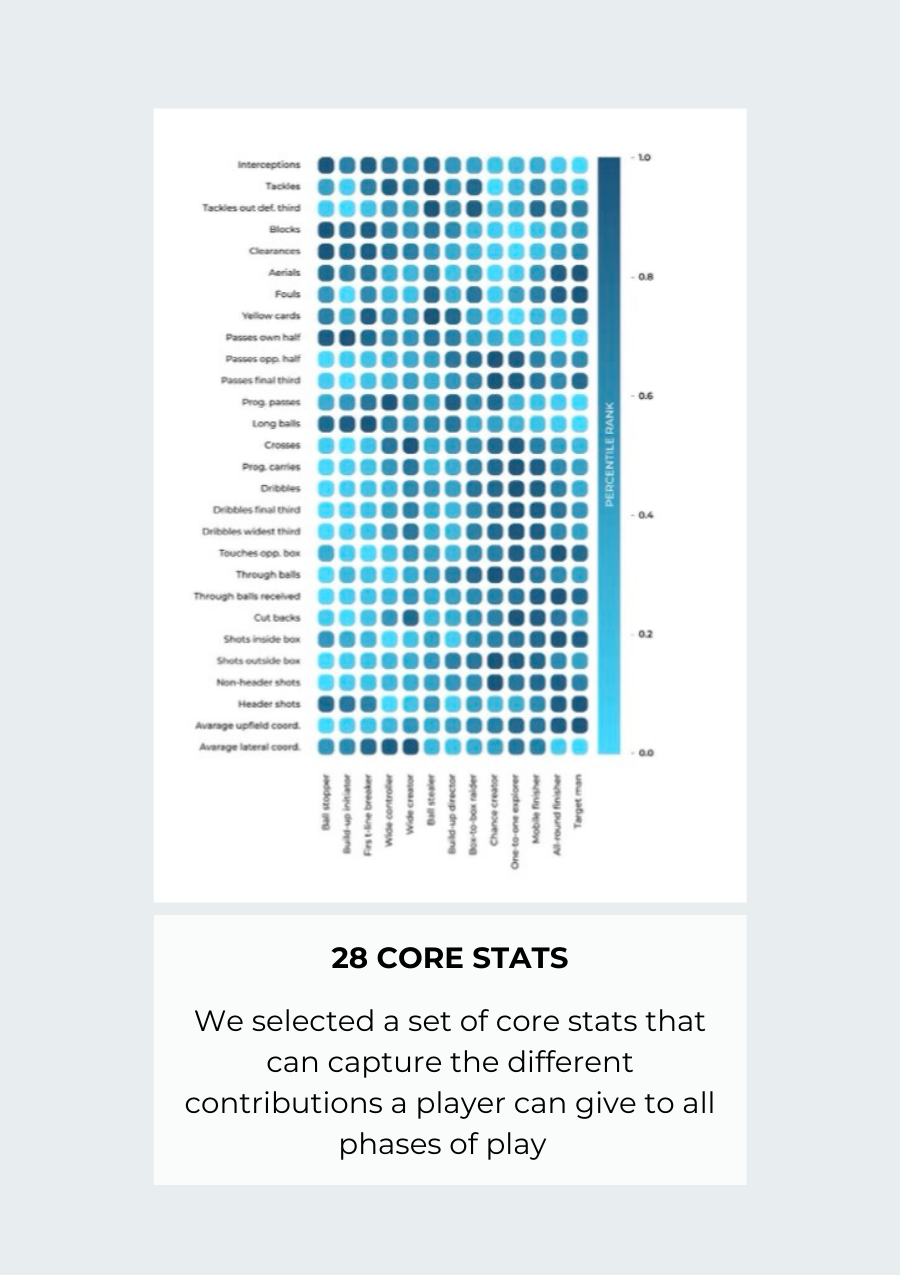 These results have an immediate application in scouting, providing a search filter with a data-driven characterisation, as opposed to the a priori one given by traditional roles.